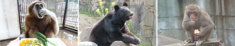 サツマイモを炭火に入れて焼きます。焼きあがったらみんなで試食して、動物にもプレゼントしましょう!焼き芋をプレゼントする動物はその日のお楽しみ!