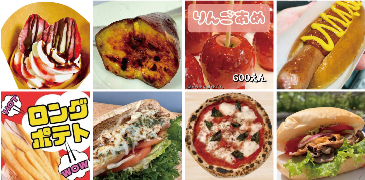 | 出 店 | メニュー | 1日(土) | 2日(日) | 3日(月祝) |
